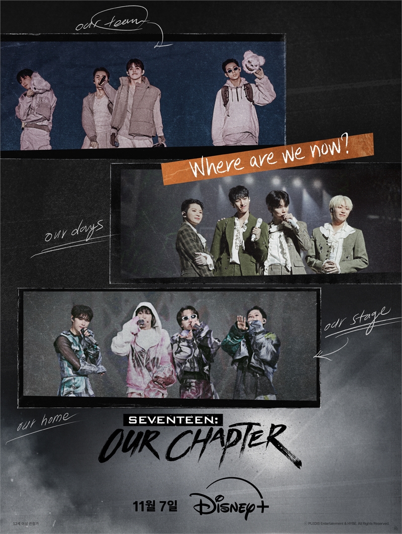 세븐틴의 첫 다큐멘터리이자, 디즈니+의 오리지널 시리즈 <세븐틴: 아워 챕터>는 11월 7일(금) 1화를 시작으로 오직 디즈니+에서만 공개되며, 이후 매주 금요일 1편씩 총 4개의 에피소드를 만나볼 수 있다.