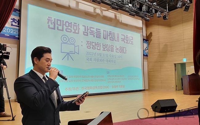 넷플릭스에서 천문학적인 시청 시간을 기록하며 글로벌 흥행에 성공한 의 황동혁 감독과 같이 창작물에 대한 정당한 수익을 지급받지 못하는 사태가 더 이상은 없어야 한다는 주장이 나왔다.31일 국회 의원회관 대회의실에서 한국영화감독조합(이하 DKG), 유정주 의원실 주최 및 주관한 '천만영화 감독들 마침내 국회로 정당한 보상