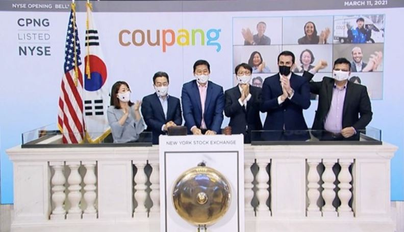 현지 시간으로 11일 뉴욕증시에 데뷔한 쿠팡이 공모가보다 41.5% 높은 주당 49.5달러로 첫날을 마감하며 증권사에서는 국내 이커머스 기업의 주가에도 긍정적인 영향을 미칠 것이라고 평가했다.