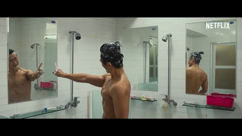 '사랑을 그대 품 안에'에서의 시그니쳐 포즈를 취하는 차인표. 넷플릭스 공식 트레일러 캡처