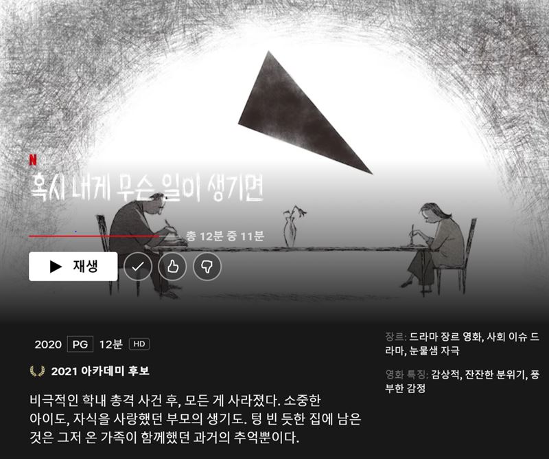 [OTT뉴스=홍지후 OTT 1기 리뷰어] 2020년 11월에 넷플릭스에 공개된 <혹시 내게 무슨 일이 생기면>은 짧은 애니메이션 영화다.