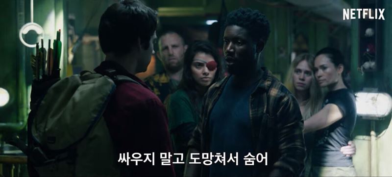 조엘이 지하 집단을 떠나며 동료들과 이야기하는 장면. 사진 넷플릭스 유튜브 캡처