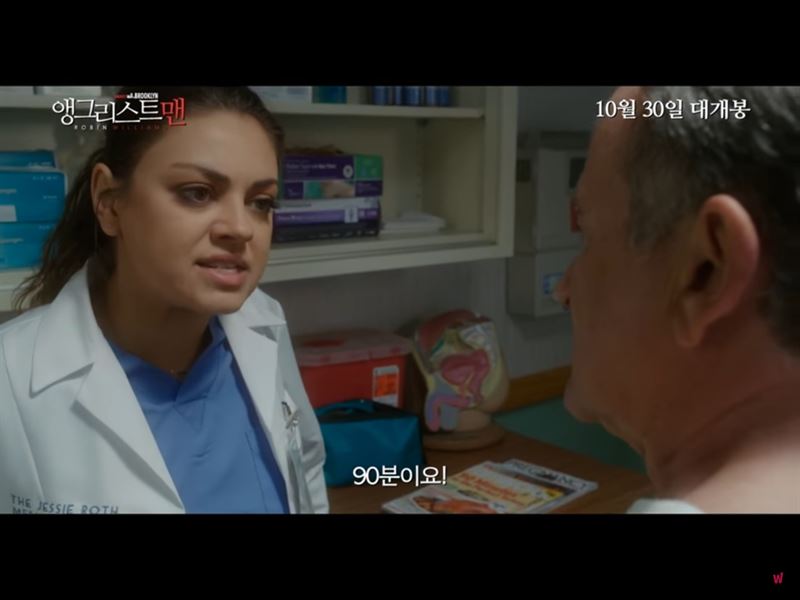 '90분'의 시한부 선고를 하는 섀런 길(밀라 쿠니스). 사진 '앵그리스트맨' 왓챠 공식예고편