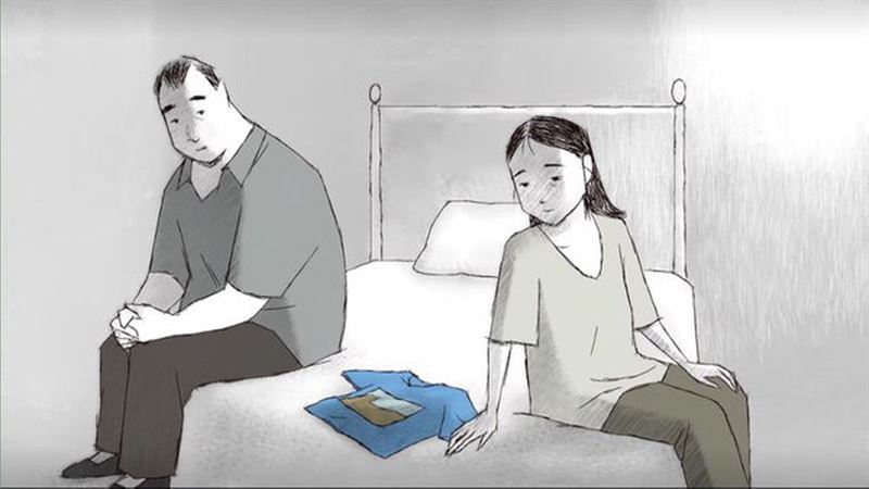 현실에서 부부는 아무것도 하지 않는다. 이는 서로의 거리를 좁혀 슬픔을 함께 이겨내고 싶은 속마음과 달리 실제로는 체념한 상태의 부부 모습을 대비해 보여주는 것일지도 모르겠다.