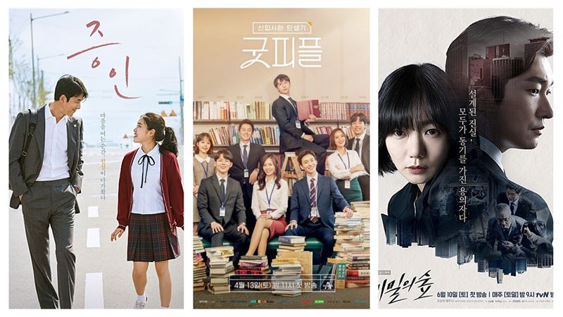 <증인>, <굿피플>, <비밀의 숲> 공식 포스터. 사진 각각 네이버 영화, 채널 A, 티빙