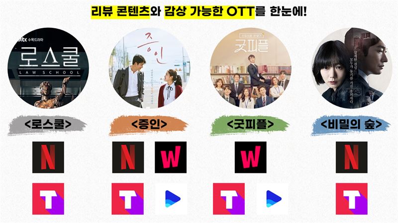 본 리뷰에서 추천한 콘텐츠와 감상 가능한 OTT를 정리한 이미지