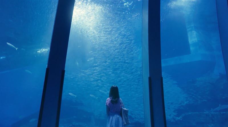 아쿠아리움에서 헤엄치는 정어리를 보고 있는 나기. 사진 웨이브 캡쳐