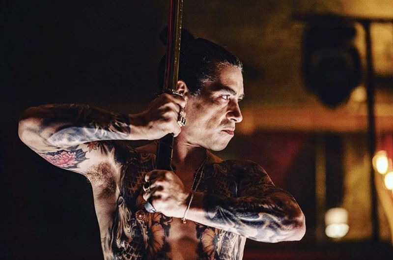 장발의 머리카락을 묶고 선글라스를 끼거나, 문신으로 가득한 상반신을 내보이며 일본도를 휘두르는 모습이라니.