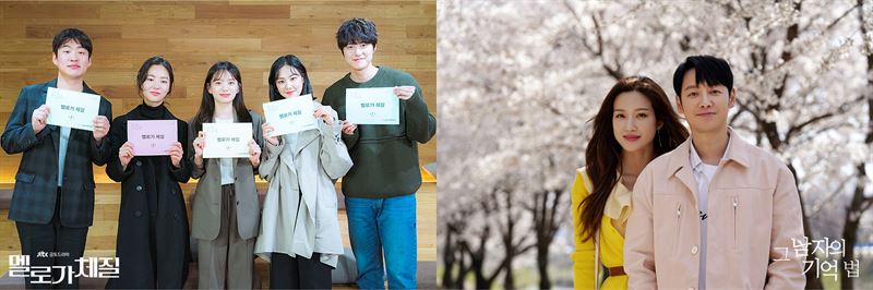 <멜로가 체질> 대본 리딩 현장(왼쪽). <그 남자의 기억법> 현장 포토 사진(오른쪽). 사진 <멜로가 체질>, <그 남자의 기억법> 공식홈