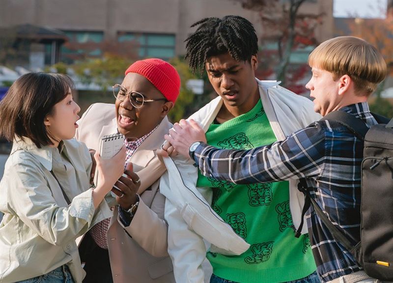 (좌부터) 다투고 있는 세완, 테리스, 현민, 한스. 사진 넷플릭스