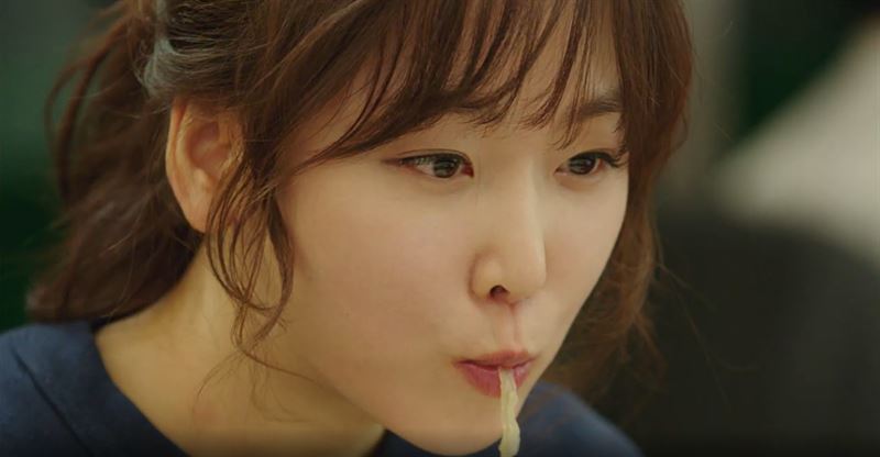 국수를 먹고 있는 백수지(서현진 분). 사진 티빙 캡쳐