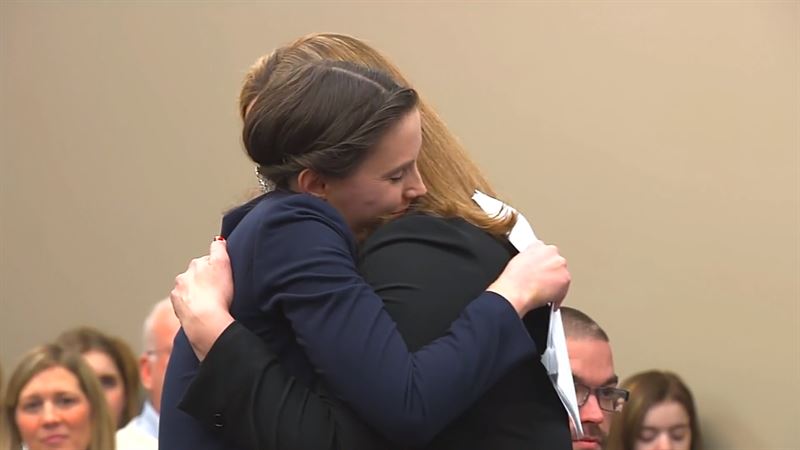 포옹하는 안젤라 포빌라이티스 검사와 레이철 덴홀랜더. 사진 넷플릭스 예고편 캡처