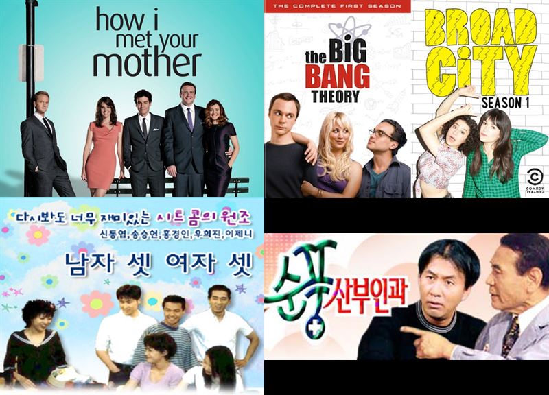 <프렌즈>의 영향을 받은 작품들 공식 포스터(왼쪽 위부터) <내가 그녀를 만났을 때>, <빅뱅이론>, <브로드시티>, <남자 셋 여자 셋>, <순풍 산부인과>. 사진 나무위키, 위키백과, 왓챠피디아