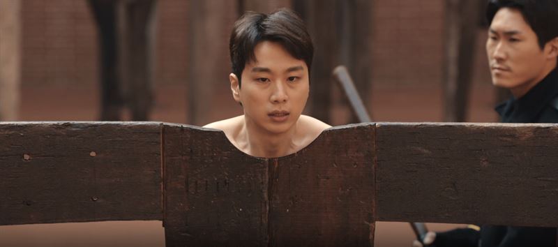 신체를 때리는 형벌인 태형(笞刑)이 집행되고 있다. 사진 티빙 캡처