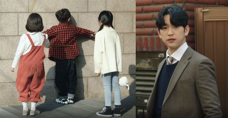 태형을 흉내 내며 노는 아이들(좌)과 이를 보고 충격에 휩싸이는 가온(우). 사진 티빙 캡처