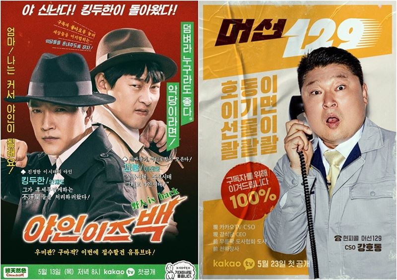 카카오TV 오리지널 <야인 이즈 백>은 매주 목/일요일 오후 8시, <머선129>는 매주 목/일요일 오후 5시에 공개된다.
