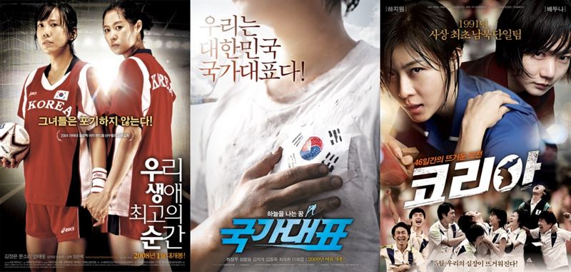 왼쪽부터 영화 <우리 생애 최고의 순간>, <국가대표>, <코리아> 공식 포스터. 각각 사진 씨네21, 다음 영화, 씨네21