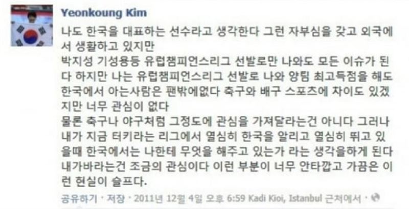 김연경이 2011년 자신의 SNS에 쓴 글. 사진 김연경 페이스북