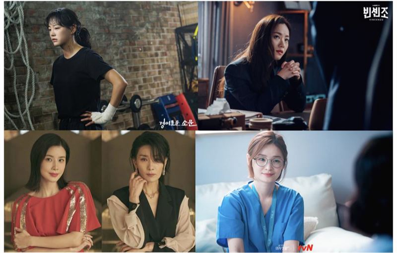 <마인>, <빈센조>, <경이로운 소문>, <슬기로운 의사생활>의 여성 캐릭터들이 그렇다.