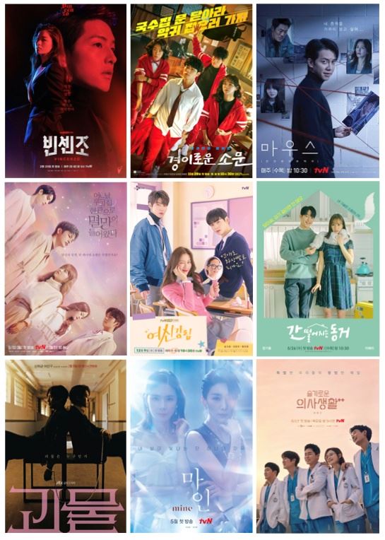 위 작품들은 전부 티빙에서 볼 수 있으며, <빈센조>ㆍ<경이로운 소문>ㆍ<괴물>ㆍ<마인>ㆍ<슬기로운 의사생활>은 넷플릭스에서도 볼 수 있다.