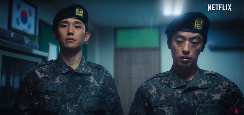 D.P.조로 함께 호흡을 맞추게 된 안준호와 한호열. 사진 넷플릭스 유튜브 예고편 캡쳐