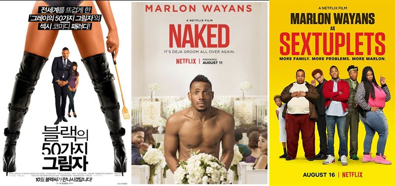 (왼쪽부터) <블랙의 50가지 그림자>, <누드 리플레이>, <섹스튜플리츠> 영화 공식 포스터. 사진 다음 영화