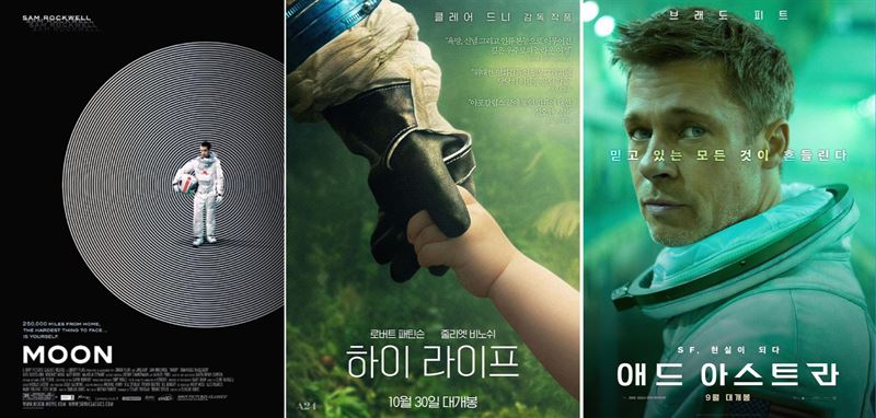 <더 문>, <하이 라이프>, <애드 아스트라> 포스터. 사진 다음영화