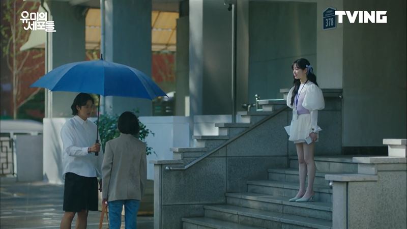무작정 찾아간 유미의 회사 앞에서 비를 맞고 있는 걸 발견한 웅은 그녀의 우산이 되어준다.