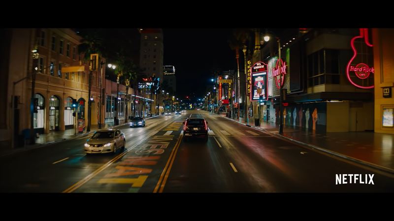 화려한 밤거리를 가로지르는 베니의 차. 사진 넷플릭스 예고편 캡처