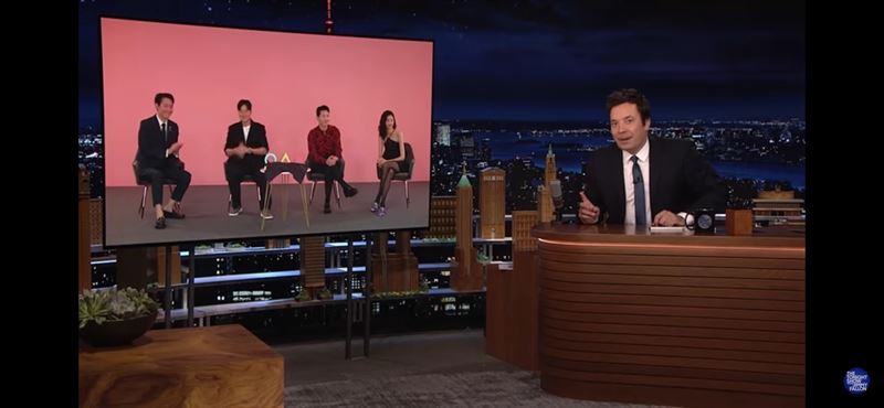 <오징어 게임>이 역대 넷플릭스 오리지널 콘텐츠 순위 1위를 기록했다. 미국 유명 토크쇼 '지미 팰런쇼'에 출연한 <오징어 게임> 출연자들. 사진 유튜브 캡처