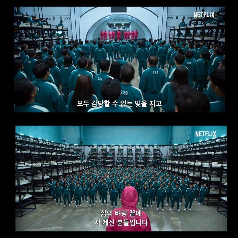 하지만 <오징어 게임>의 참가자들은 큰 빚을 지고 들어와 인생 역전을 위한 상금을 노리고 게임에 참여한다.