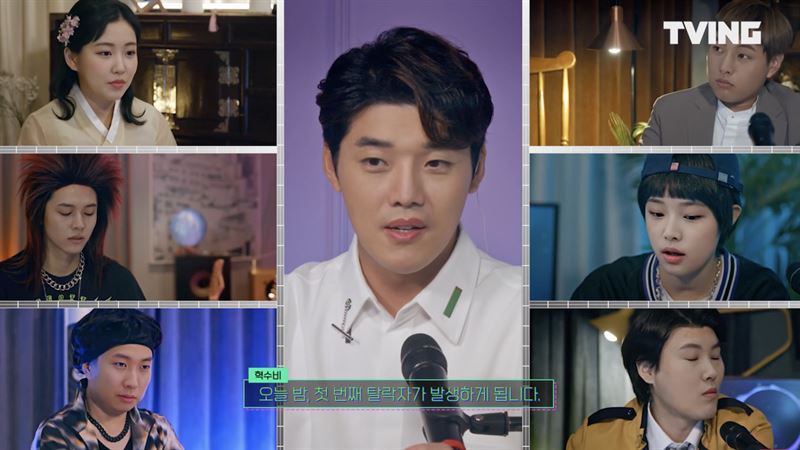 티빙 오리지널 예능 <가상세계지만 스타가 되고 싶어>의 MC와 출연진. 사진 티빙 유튜브 캡처