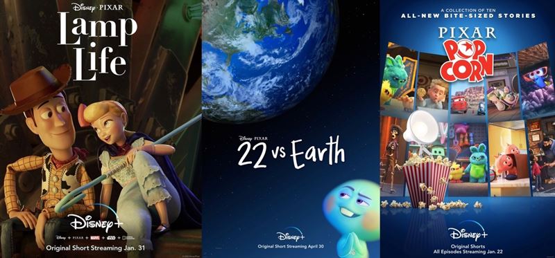 <램프라이프>, <22vs지구>, <픽사 팝콘> 공식 포스터. 사진 다음 영화,키노라이츠