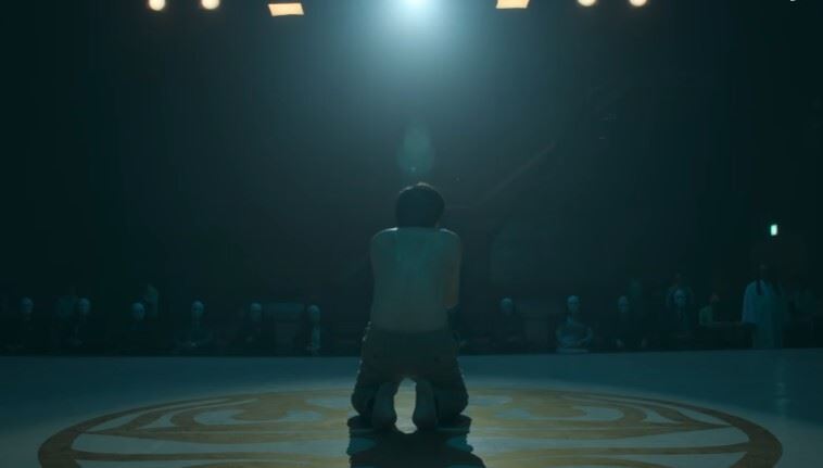 지옥행 고지를 받은 남성이 시연(지옥사자들에 의해 지옥에 가는 과정)을 준비하고 있다(사진=넷플릭스 유튜브 캡처).