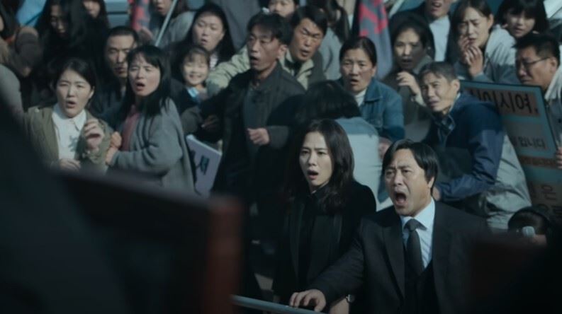 지옥사자들의 등장에 경악하는 시민들. 사진 넷플릭스 유튜브 캡처