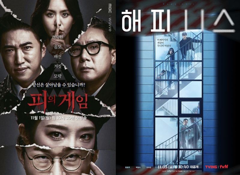 웨이브 오리지널 <피의 게임>, 티빙 오리지널 <해피니스> 포스터. 사진 공식 홈페이지