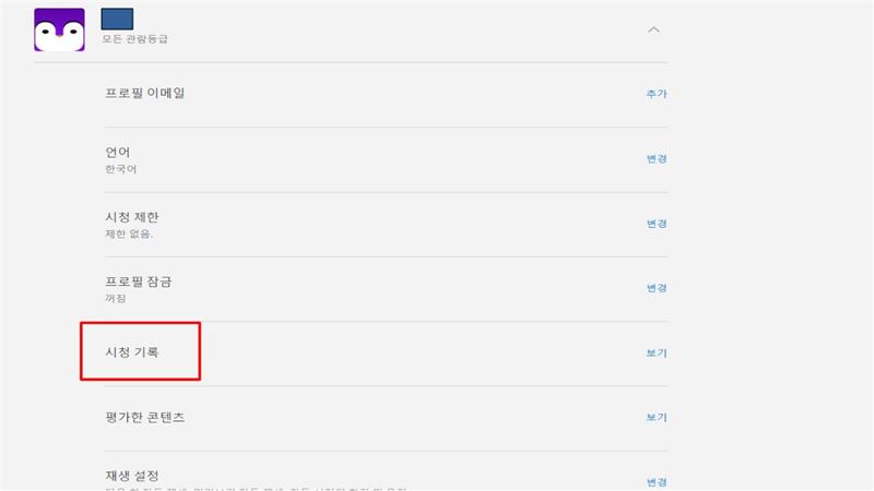 계정 관리 설정에서 시청 기록을 확인할 수 있다.(사진=넷플릭스 공식 홈페이지 캡쳐).