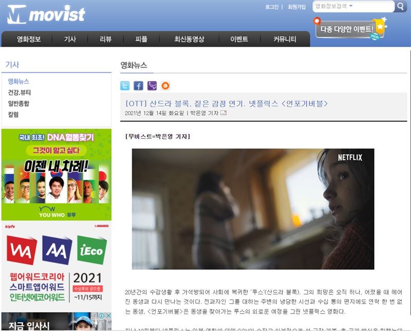 영화 전문지 무비스트는 [OTT]라는 말머리를 달고 무비스트 기자들이 각 OTT 플랫폼 콘텐츠를 매일 1~2회 소개한다.