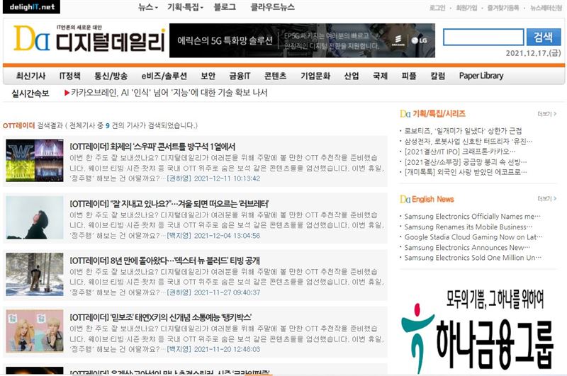 디지털데일리 'OTT레이더'(사진=디지털데일리 홈페이지 캡쳐).