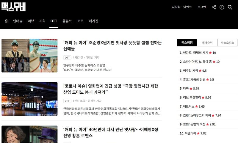 맥스무비에는 섹션명이 'OTT'인 섹션도 있을 정도로 OTT 분야에 많은 관심을 갖고 있다. 주3~5회 OTT관련 기사를 업로드한다.