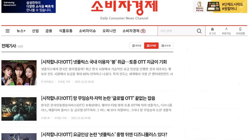 소비자경제 시작합니다!OTT '(사진=소비자경제 홈페이지 캡쳐).