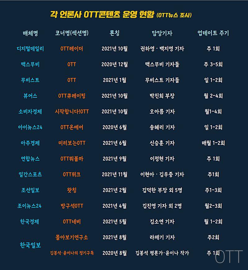 각 언론사 OTT 콘텐츠 관련 코너또는 섹션 운영 현황. OTT뉴스 정리
