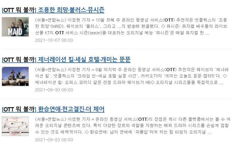연합뉴스 'OTT 뭐 볼까'(사진=연합뉴스 홈페이지 캡쳐).