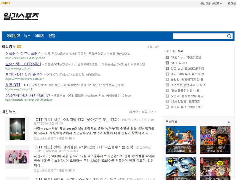 일간스포츠 'OTT 위크'(사진=일간스포츠 홈페이지 캡쳐).