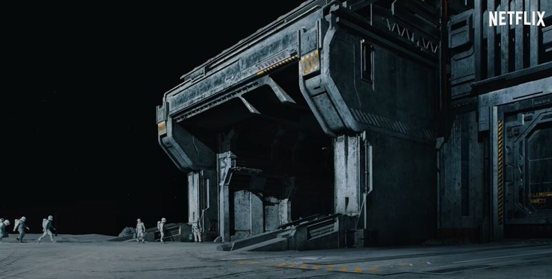 발해기지로 들어가는 대원들. CG 기술력의 스케일이 돋보이는 장면이다. 사진 넷플릭스 코리아 유튜브 캡처