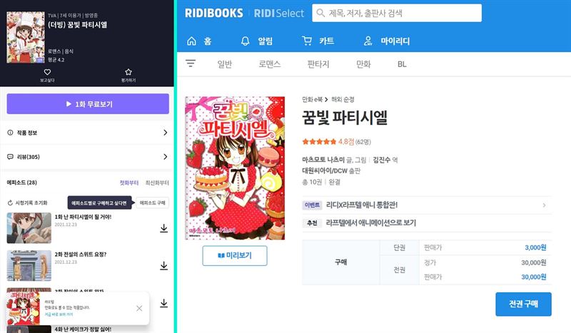 ◆ 원작 만화를 찾아보다, 리디북스 연동