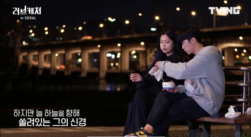 이하늘과 정수원의 데이트. 사진 티빙 유튜브 캡처
