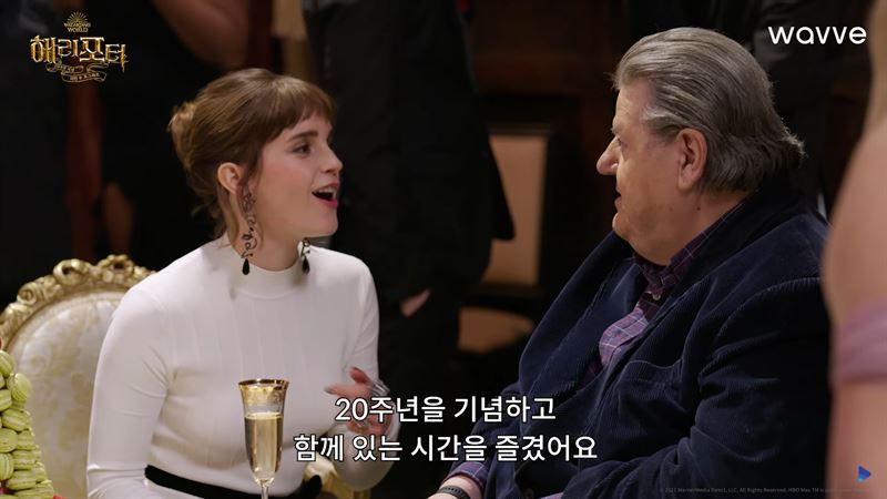 그레이트홀에서 이야기를 나누는 엠마 왓슨과 로비 콜트레인. 사진 웨이브 공식 유튜브 캡처
