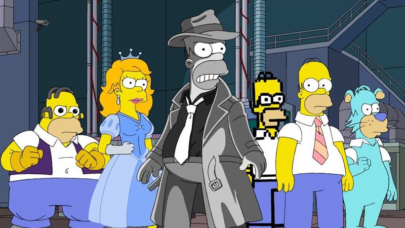 작년에 방영되었던 <시즌 32, 4화 공포의 트리하우스 시리즈>에서는 다양한 세계의 호머들이 만나 그들의 숙적인 다양한 세계의 번즈 사장을 맞서는 장면이 나온다.