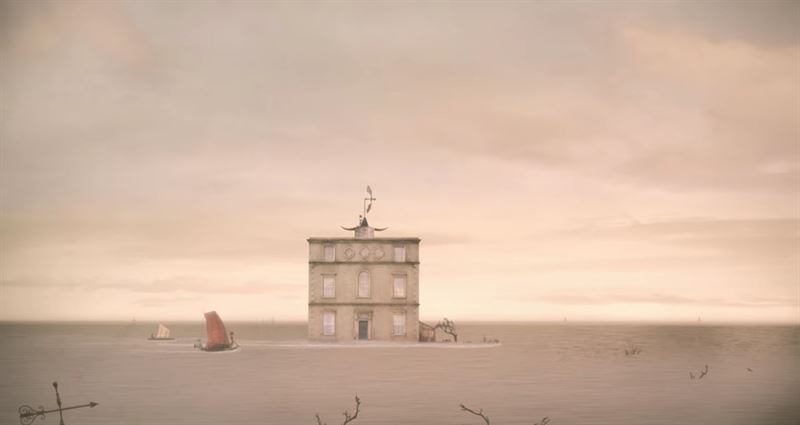 가까운 미래를 배경으로 세 번째 에피소드에서 집은 홍수가 난 바다에 한가운데 놓였다.